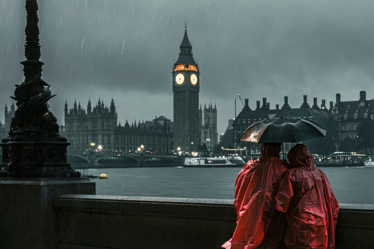 Foto sündis nii, et olin ühel õhtul linnas, turistide rohkes kohas ning olin just teel koju, kaamera ühes, vihmavari teises käes. Vihma kallas ja rahvamassid liikusid kiiresti siia-sinna. Kiirustasin, et jõuda ühistranspordile, kui äkki märkasin üht paarikest, kes lihtsalt seisid ja nautisid Thamesi ja Londoni vaadet. Nad näisid vihmast üldse mitte hoolivat, vaid olid täielikult hetkes. Läksin neile lähemale ja jäädvustasin selle stseeni.