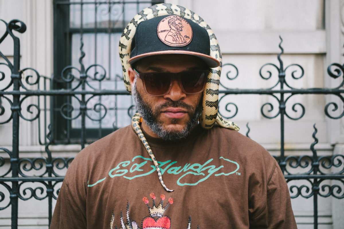Panen siia hoopis ühe tänavaportree. See on minule huvitav just sellepärast, mis seal minu selja taga toimus. Sattusin New Yorgis kaameraga Pride Parade’ile (geiparaad – toim), kus tänavad olid puupüsti inimesi täis. Seal massis liikudes märkasin tüüpi, kelle pea peal roomas madu. Möödudes kiire noogutus, et luba küsida, klõps ja liikusin massiga edasi. Juhuslikult läks õnneks, et keegi teine kaadrisse ei jäänud. Ilmselt hoidsid maost eemale. Hiljem avastasin, et taustal oleva aia teibad on ka kõik nagu ussi sabad.